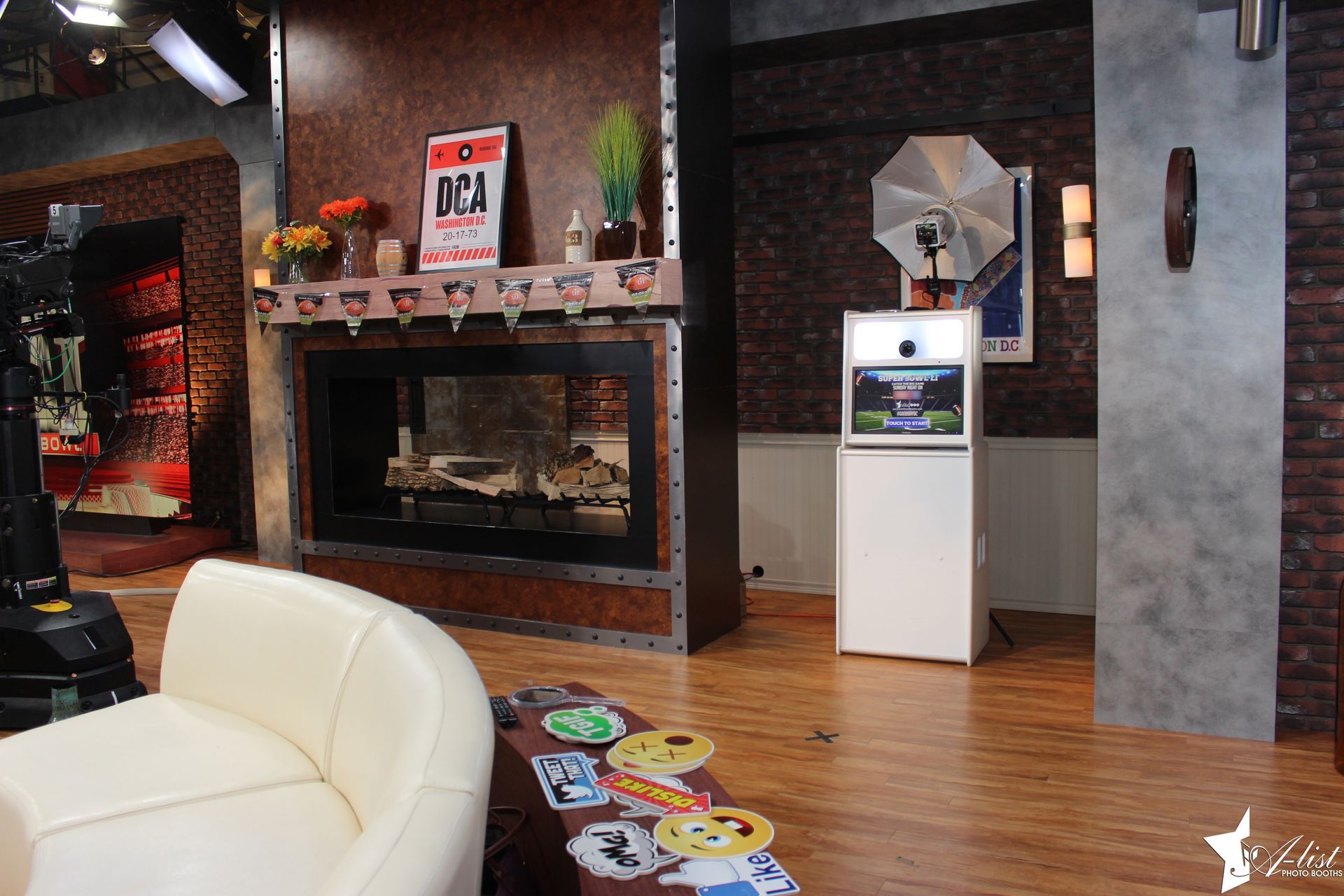 Above is our Digital Photo Booth. It's normally sent out with no backdrop so the entire footprint of this photo booth is only 20"W x 20"D. All you need is a couple feet between the people and the booth! The booth/camera can face towards the crowd, an open area or wall!